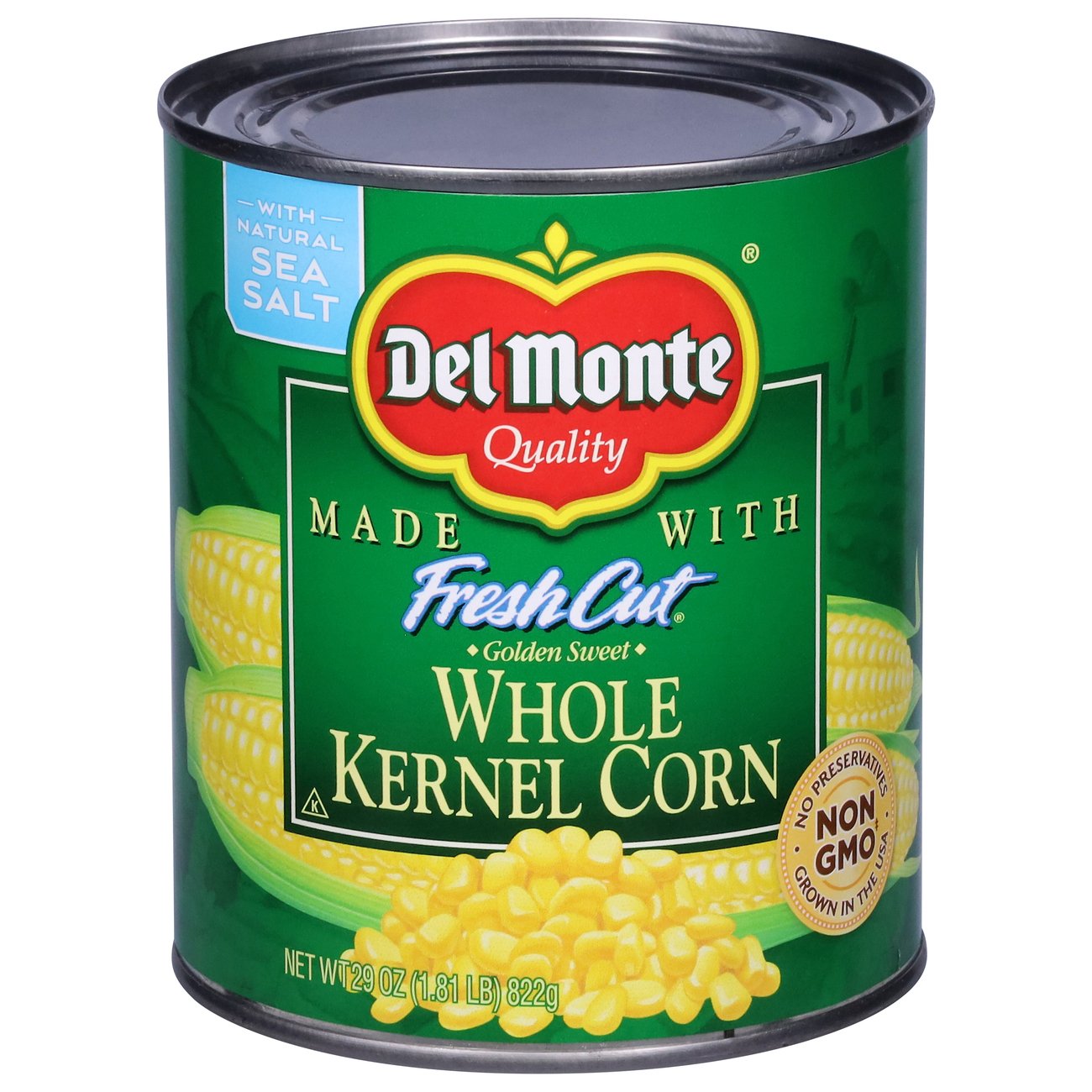 DEL MONTE FRESH CUT Golden Sweet Whole Kernel Corn, Canned Vegetables ... DEL MONTE corn is certified Non-GMO* and contains no artificial preservatives for an amazing fresh vegetable taste that complements any homemade dish. Bring the wholesome goodness of the earth to your dinner table with DEL MONTE FRESH CUT Canned Sweet Corn. *Ingredients of the types used in this product are not genetically modified.