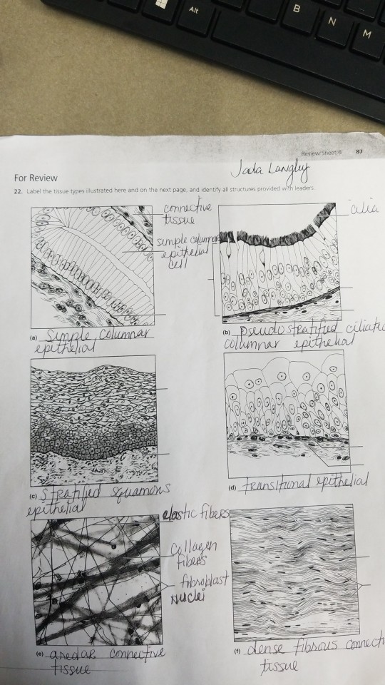 Solved 22. Label the tissue types illustrated here and on - Chegg 22. Label the tissue types illustrated here and on the next page, and identify all structures provided with leaders. Review Sheet 6 91 For Review 50 Cooooooo Kad door en ob por 29.0 000000 (b) O 0 (c) (d) (0) Question: 22. Label the tissue types illustrated here and on the next page, and identify all structures provided with leaders. Connective tissue quizzes and labeling worksheets - Kenhub Connective tissue is what connects, separates and supports all other types of tissues in the body. Its cells are loosely packed within the extracellular matrix (network of macromolecules outside of the cell that provide it with structural and biochemical support). This differentiates it from other, tightly-packed, tissue types. Lab 5 review tissue types Flashcards | Quizlet Start studying Lab 5 review tissue types. Learn vocabulary, terms, and more with flashcards, games, and other study tools. Home. Subjects. Explanations. Create. Study sets, textbooks, questions. ... name and label this tissue (top to bottom) Recommended textbook explanations. Campbell Biology 11th Edition Lisa A. Urry, Michael L. Cain, Peter V ...
