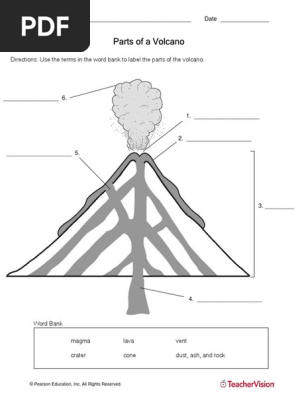 Parts of a Volcano Labeling Worksheet - TeacherVision Parts of a Volcano Labeling Worksheet. Download. Add to Favorites. Students label the parts of a volcano diagram using words provided in the word bank. This printable can be used as post-unit assessment for earth science or volcanoes and earthquakes, or can be assigned as a take-home or independent completion activity. An answer key is provided.