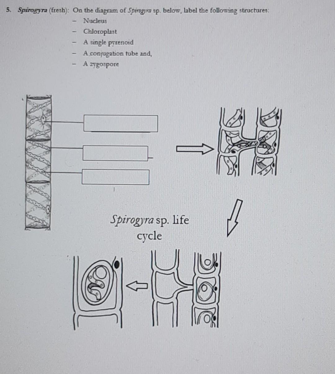 Solved Spirogyra label: vegetative filaments, | Chegg.com Spirogyra label: vegetative filaments, zygote, conjugation tube; Expert Answer. Who are the experts? Experts are tested by Chegg as specialists in their subject area. We review their content and use your feedback to keep the quality high. Spirogyra- Spirogyra are commonly known as "water silk or pond silk" .