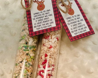 Magical Reindeer Food - The Fountain Avenue Kitchen Instructions. Pour 3-4 tablespoons of oats into each plastic bag. Add a tablespoon or two of sprinkles. Iridescent sprinkles or red and green sprinkles are good choices; but use what you have on hand. (You can even use the fine sanding sugar used for sand tarts.