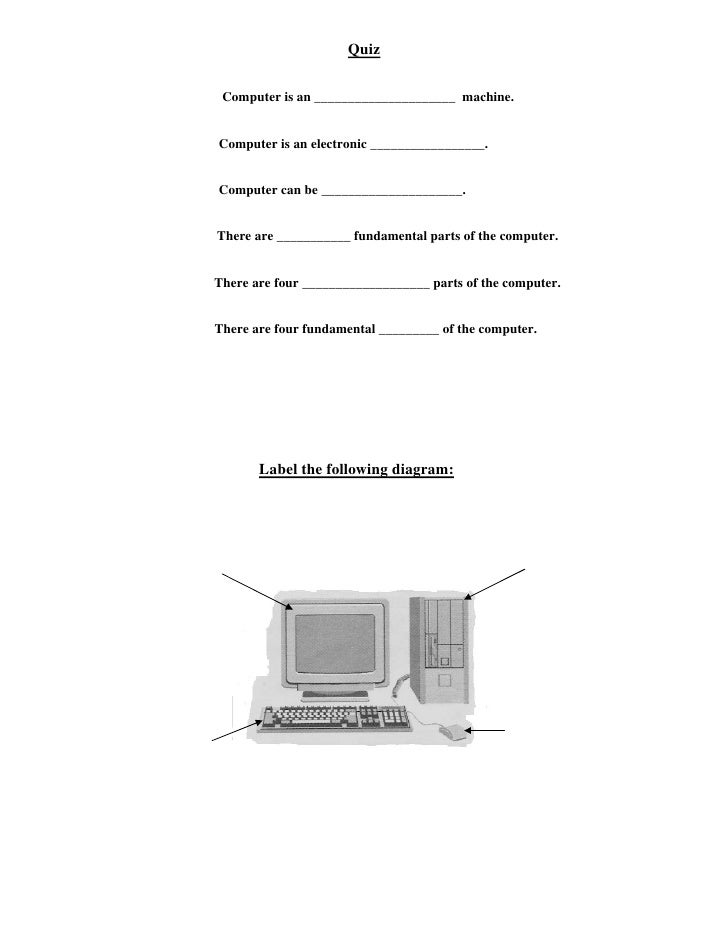 PDF Computer Parts Diagram - EnglishForEveryone.org Basic Computer Parts Directions: try to label the parts of the computer correctly. Title: Microsoft Word - Computer Parts Diagram.doc Author: rewind Created Date: