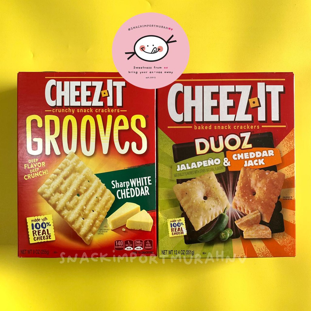 Cheez-It Cheese Crackers, Original, 12.4 Oz, Box - Walmart.com Make snack time more fun with Cheez-It Original Baked Snack Crackers, bite-size cheesy crackers that are baked to crispy perfection. Cheez-It Original Baked Snack Crackers are the real deal - made with 100% real cheese that's been carefully aged for a yummy, irresistible taste that's bursting with real cheese goodness in every crunchy bite.