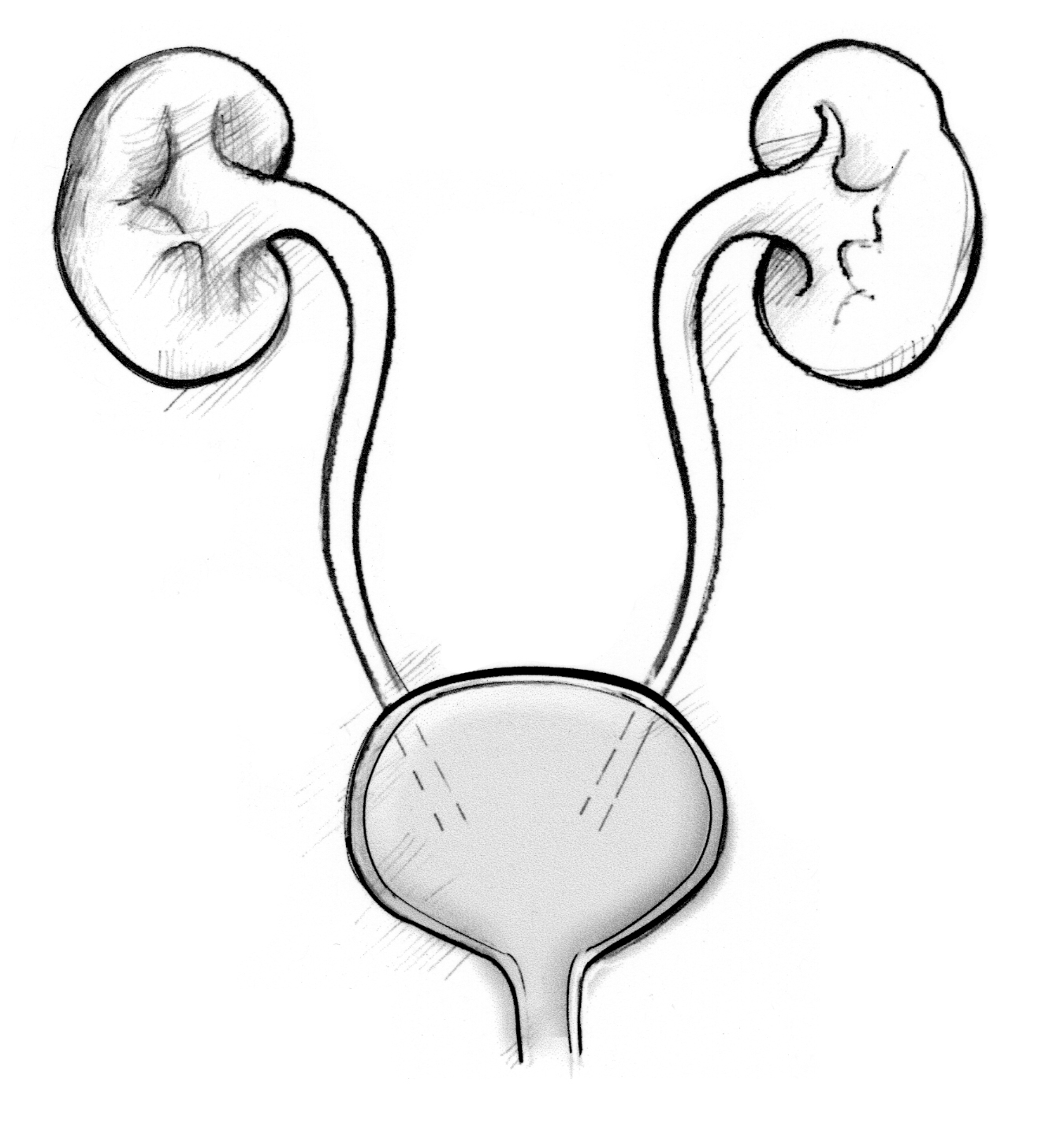 Label the Urinary Tract #1 Printout - EnchantedLearning.com Read the definitions, then label the urinary tract diagram below. Human Anatomy. bladder - a hollow organ that stores urine until it is excreted. kidney - two bean-shaped organs that take waste from the blood and produce urine. ureter - two tubes, each of which carries urine from a kidney to the bladder. urethra - the tube that carries urine ...