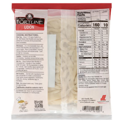 Udon Noodles Nutrition Facts - Eat This Much Udon Noodles Wan Hua Foods Find on Amazon Percent calories from... Quick stats 274.4 Calories 53g Carbs (50.5g net carbs) 2.5g Fat 10g Protein No price info Try our free Diet Generator I want to eat calories in meals. I like to eat Not the food you're looking for? Try these: Udon Stir-Fry Noodles Ka-Me