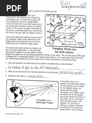 global wind patterns worksheet answer key pdf This worksheet has 26 Earth Science Regents questions about global wind patterns. Analyze maps of global wind fields to infer patterns of atmospheric circulation. The combination of what two things causes global wind patterns. The region of Earth receiving the Suns direct rays is the equator. About 80 km 8.