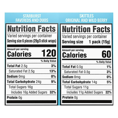 Skittles fun size nutrition label