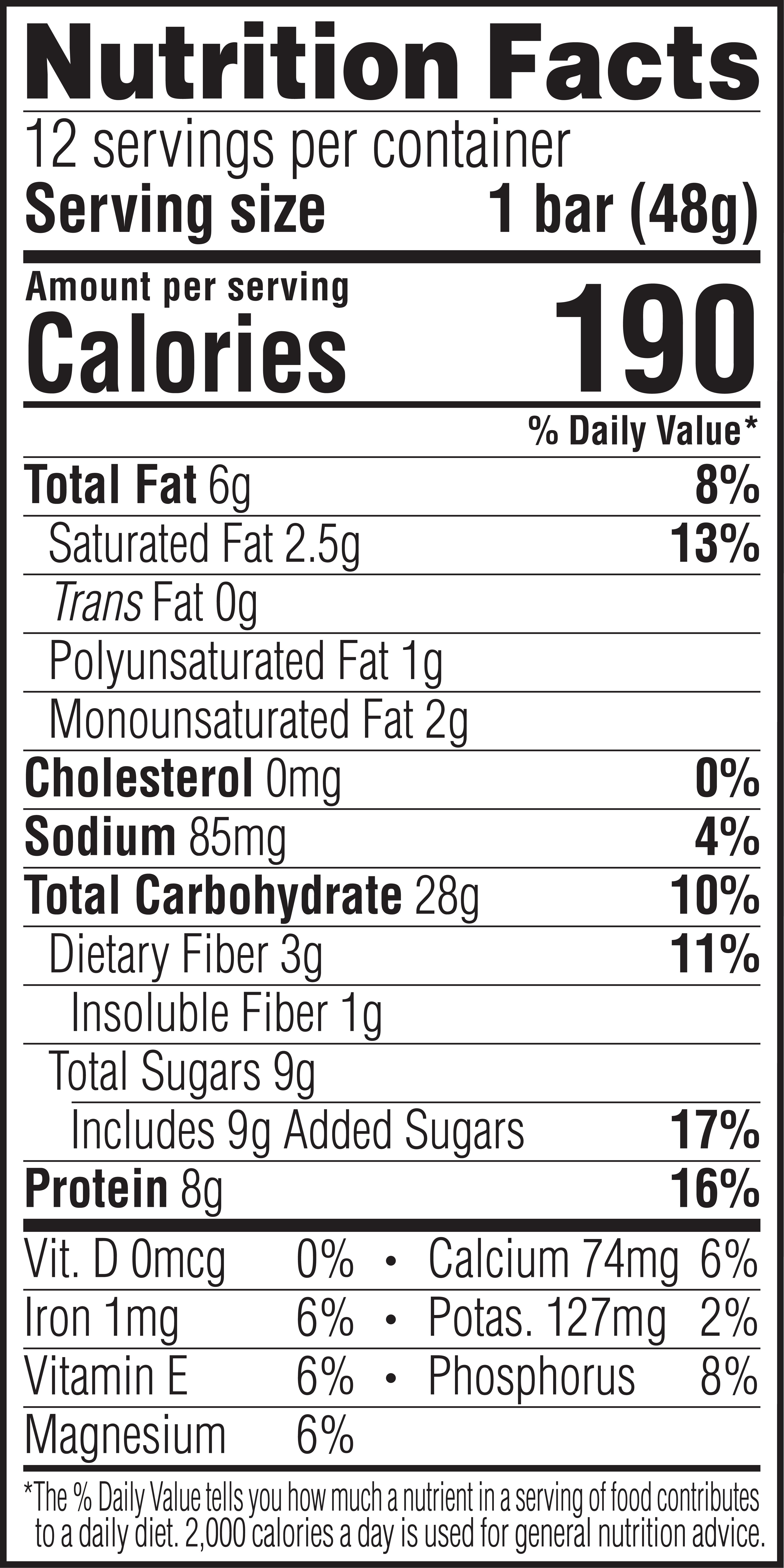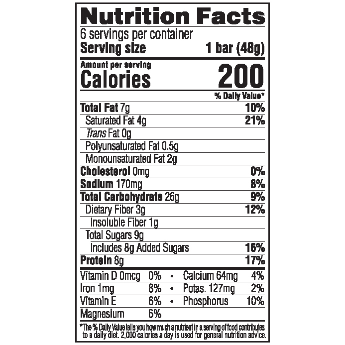 Luna bar nutrition label