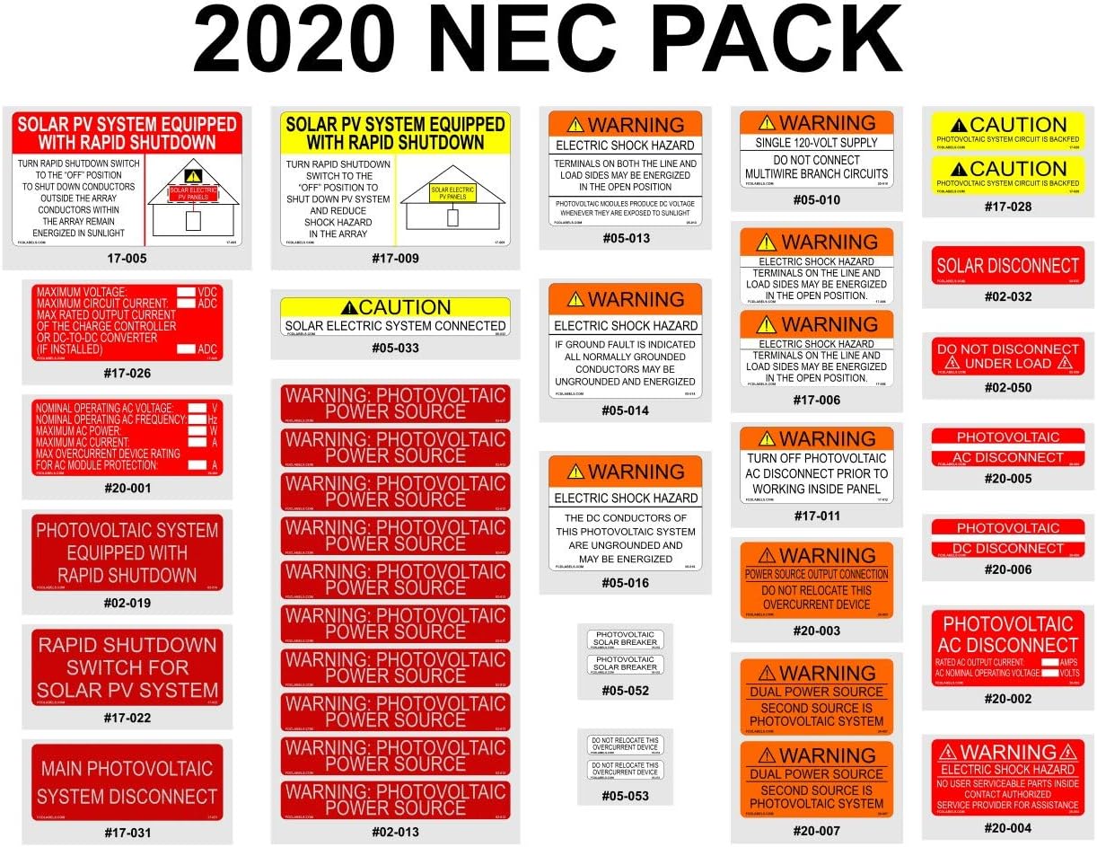 100-102_Solar Safety Labels- Pack of 43-2014, 2017 and 2020 NEC Pack -Solar Label Pack- 43 Premium UV Resistant Solar PV Safety Warning Photovoltaic ...