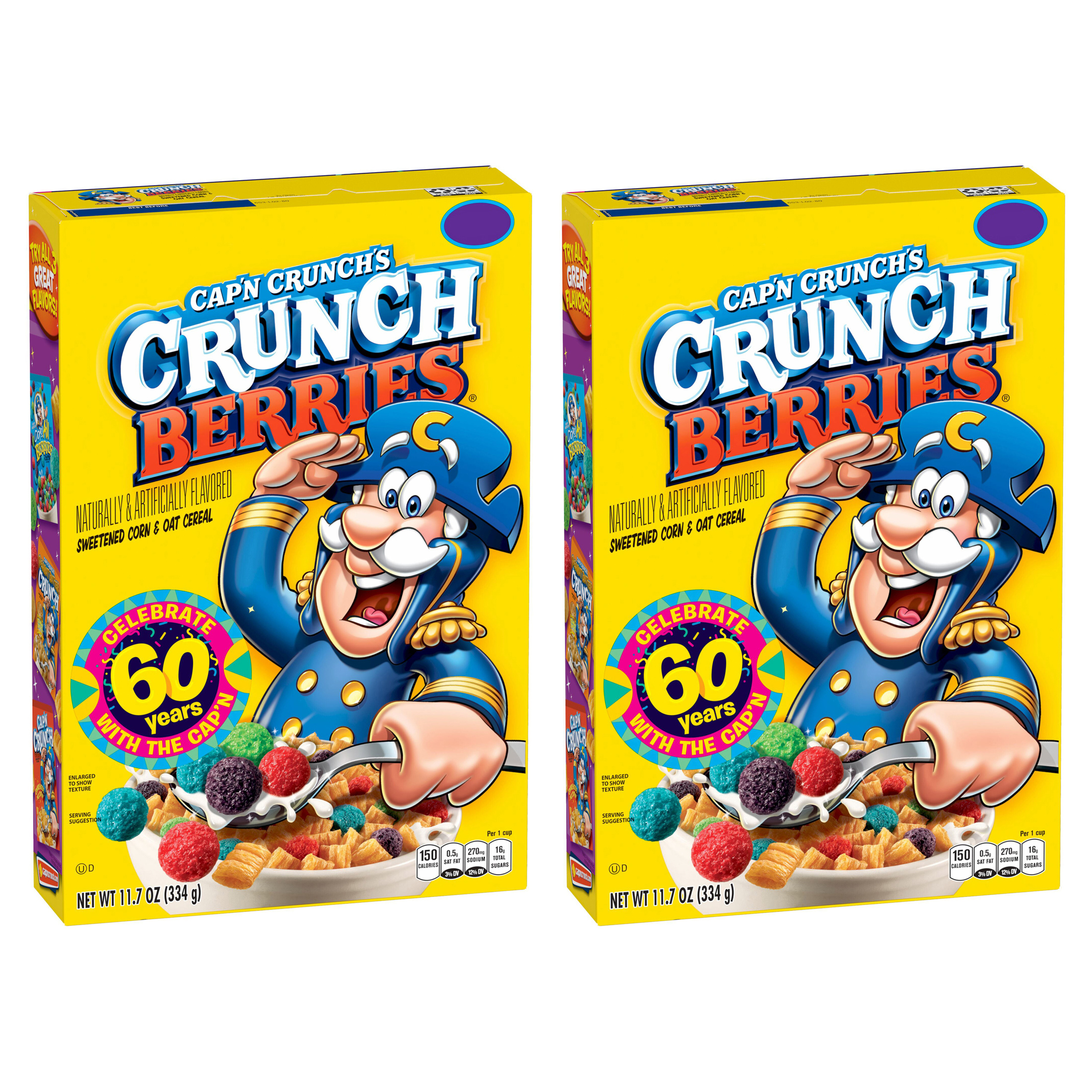 Cap'n Crunch's Crunch Berries® | Cap'n Crunch Cap'n Crunch's Crunch Berries® Description Rock your taste buds in a berry crunchy way. Cap'n Crunch's Crunch Berries ® take the original crunch you love, and add in bursts of colorful berry flavor. Snag a box and go to town…your mouth will love you for it. *Product formulations, packaging and promotions may change. Nutrition Facts for Cap'n Crunch Cereal • MyFoodDiary® Nutrition Facts. Serving Size. cup. 1 cup = 38g. Amount Per Serving. 150. Calories % Daily Value* 3%. Total Fat 2g. 3% Saturated Fat 0.5g Trans Fat 0g. 0%. Cholesterol 0mg. 13%. ... Top Cap'n Crunch Items. Cap'n Crunch Crunch Berries Cereal Milk not included. 1 cup (37g) Log food: Cap'n Crunch Peanut Butter Crunch Cereal Milk not included. 1 ...